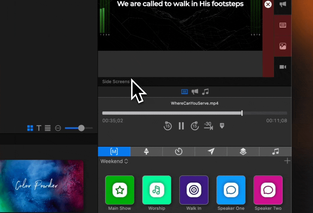 슬라이드에 객체를 추가하는 것이 그 어느 때보다 간단해졌습니다. 새로운 툴바는 ProPresenter 내에서 텍스트 상자, 도형 등을 추가하여 아름다운 슬라이드를 만드는 것을 더욱 쉽게 만들어 창의성을 손끝에서 유지합니다.