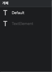 모양의 경우 '텍스트' 개체를 선택했을때 표시되는 메뉴이다.