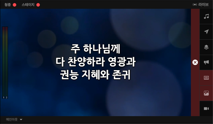 우측상단의 라이브 메뉴의 경우 유튜브등으로 다이렉트로 송출이 가능한 메뉴입니다. (사전설정필요)