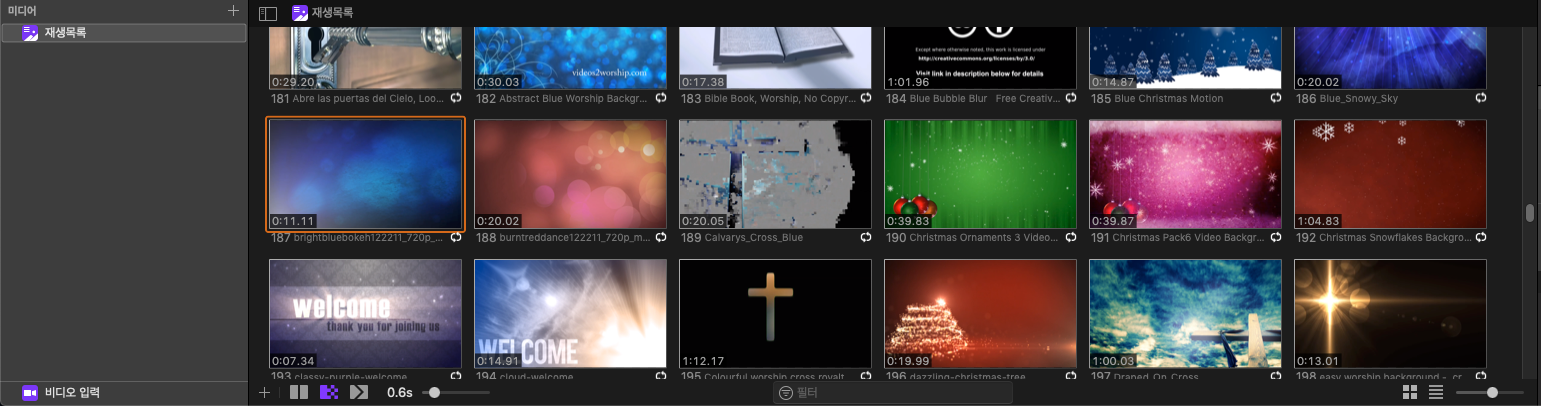 이전 버전과 마찬가지로 미디어 빈의 왼쪽 공간은 재생목록 및 재생목록 폴더용으로 예약되어 있습니다.