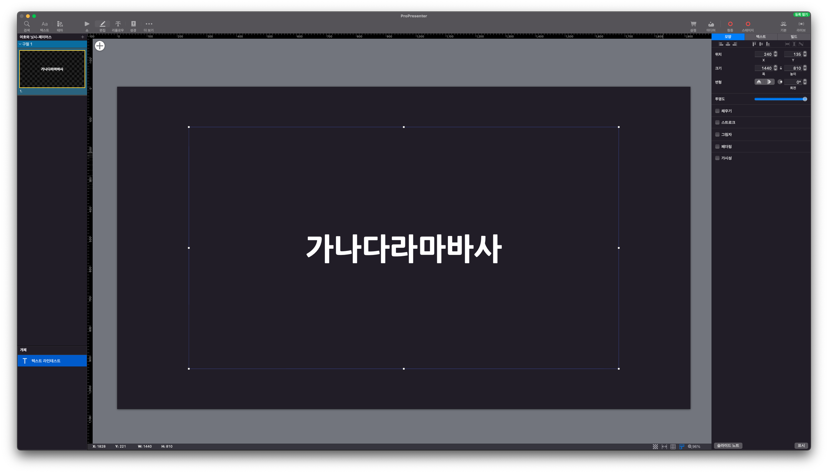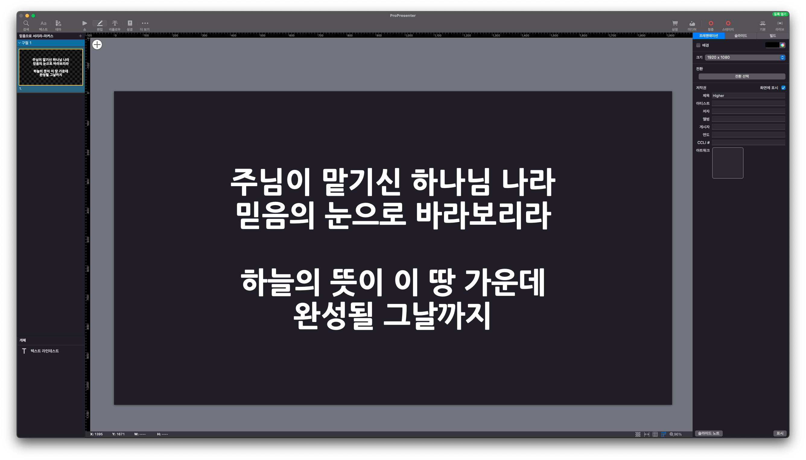 그래서 한가지 더 알려드리자면 프로프리젠터에서 상단 메뉴 - ProPresenter - 키 매핑 [Option(⌥)+K] 이라는 창이 나옵니다.