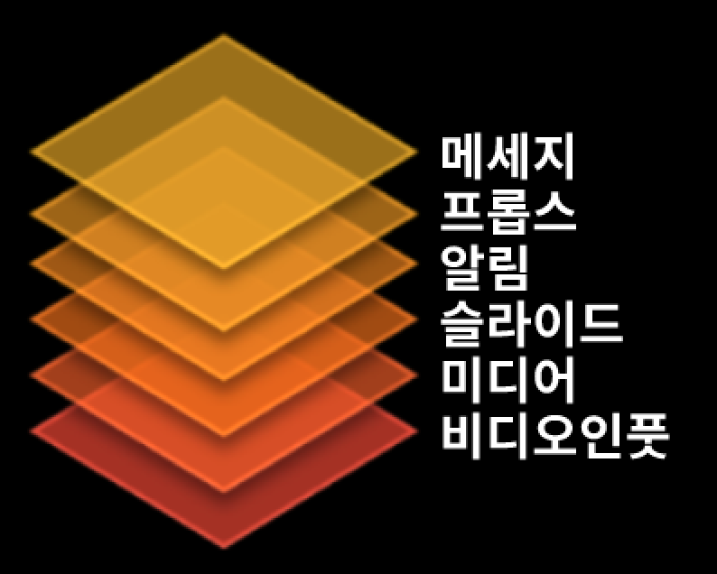 화면 레이어는 좌측의 순서대로 나열됩니다.