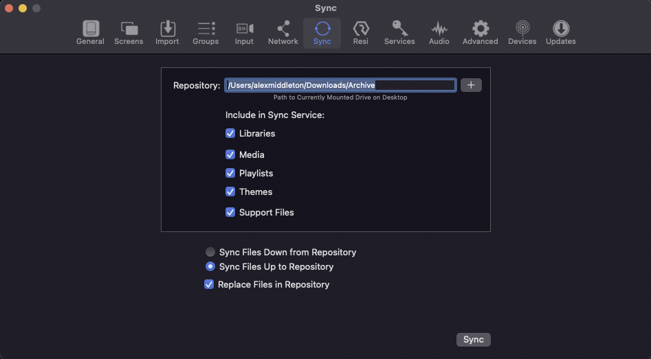 ProPresenter를 사용하면 라이브러리 이외의 파일을 포함하여 컴퓨터 간에 파일을 쉽게 동기화할 수 있습니다. 이렇게 하면 ProPresenter로 새 컴퓨터를 훨씬 쉽게 설정할 수 있을 뿐만 아니라 컴퓨터를 서로 동기화할 수 있습니다.